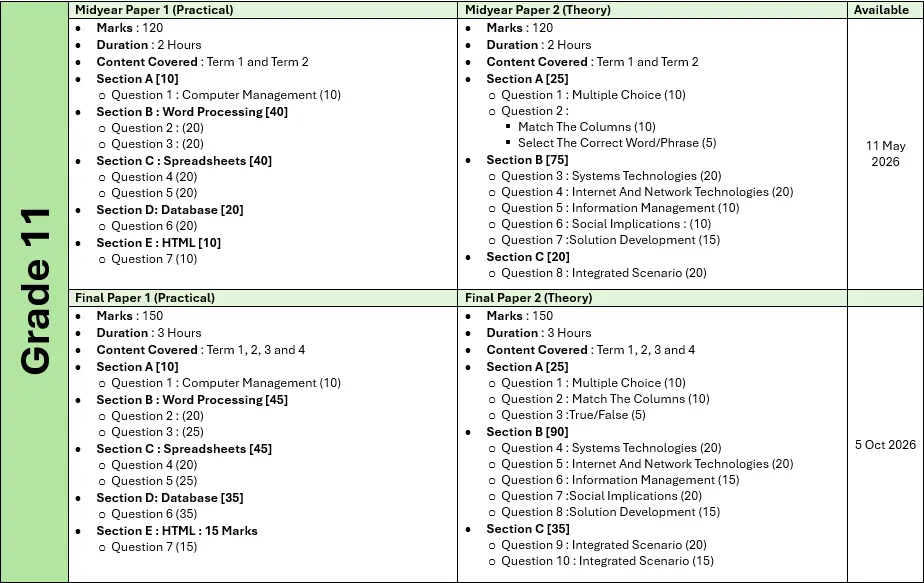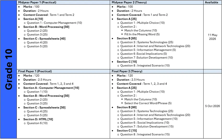 - An exam overview to act as a guideline/scope for your students to prepare from for the exam.