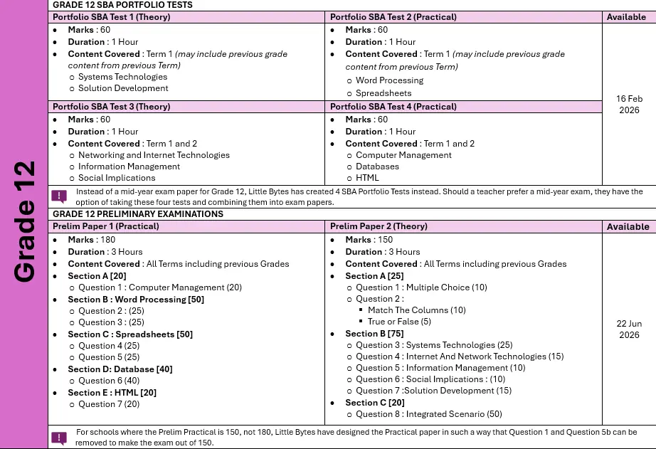 2006 is upon us and Little Bytes plans to deliver, once again, the high quality examination papers so many teachers have been using over the last few years. We pride ourselves in creating the most authentic-looking data, creative and challenging questions with a stunning marking grid to make marking easier and error free. Go take a look at what we have for 2026.